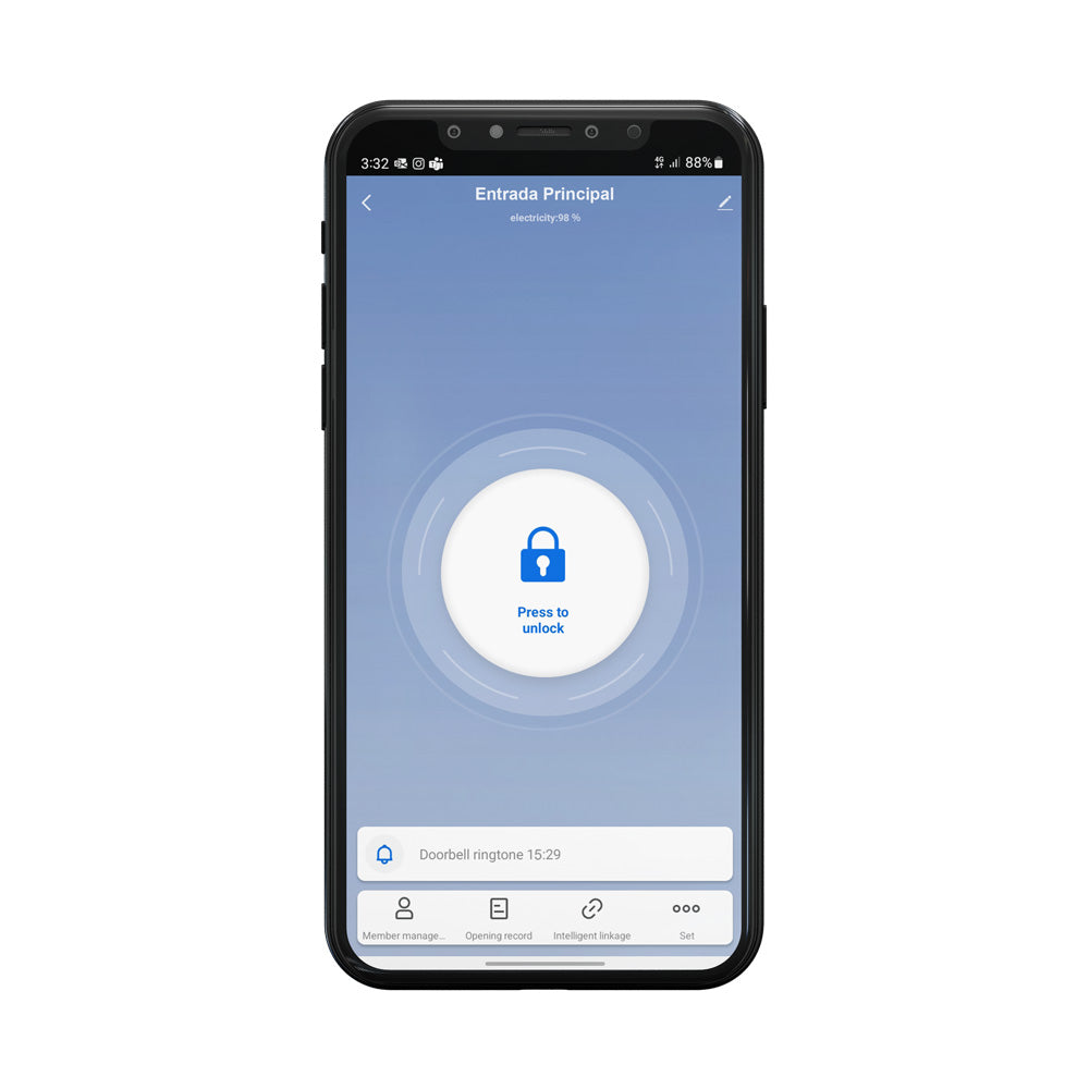 ● Apertura con: – Bluetooth a través de App TUYA, SmartLife / Ttlock para dispositivos iOs / Android – Disponible en Español. – Huella biométrica (Hasta 200 huellas diferentes) – Tarjeta / llavero (Hasta 200 diferentes, incluye 3). – Código PIN de 6 a 8 dígitos (Hasta 150 diferentes) – Llaves mecánicas de seguridad de respaldo (incluye 2).