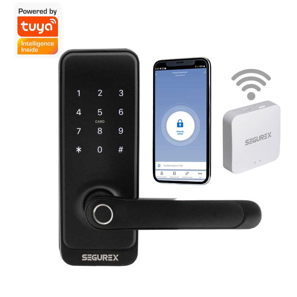 La cerradura biométrica inteligente Segurex H15B es una cerradura diseñada para ingresar sin llaves, para una máxima flexibilidad y conveniencia. En primer lugar, el usuario puede utilizar huella digital, tarjeta de proximidad y su celular para desbloquear la puerta. Así mismo, la aplicación Tuya / SmartLife mantiene un registro de quién ha ingresado, lo cual le brinda una mayor seguridad. Puede integrarla a sistemas de automatización del hogar, como por ejemplo, Alexa, Google Assistant (Con el Gateway Segurex GY-TYZSE (Se vende por separado).