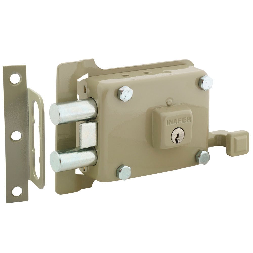 Cerradura de Sobreponer de seguridad para puerta de entrada principal, de alta calidad con garantía de por vida, fabricada en Colombia. Con recubrimiento antimicrobiano.
