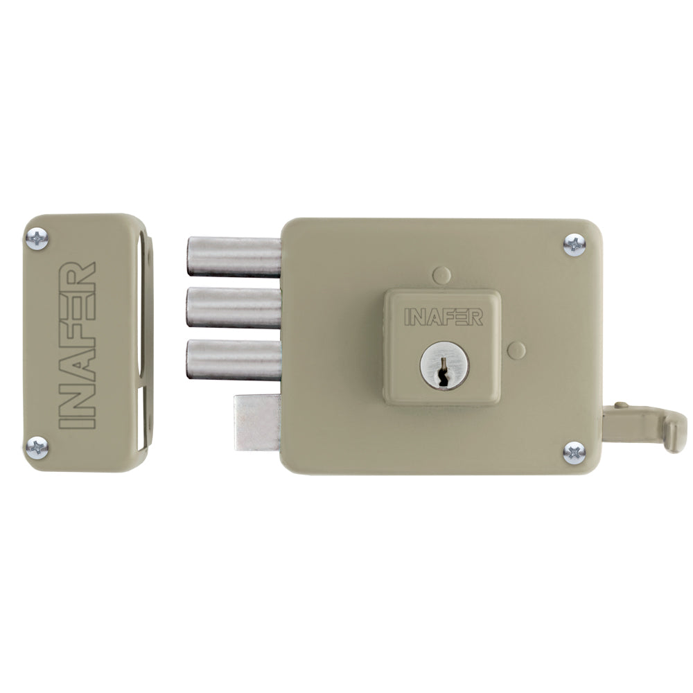Cerradura de Sobreponer de seguridad para puerta de entrada principal, de alta calidad con garantía de por vida, fabricada en Colombia. Con recubrimiento antimicrobiano.