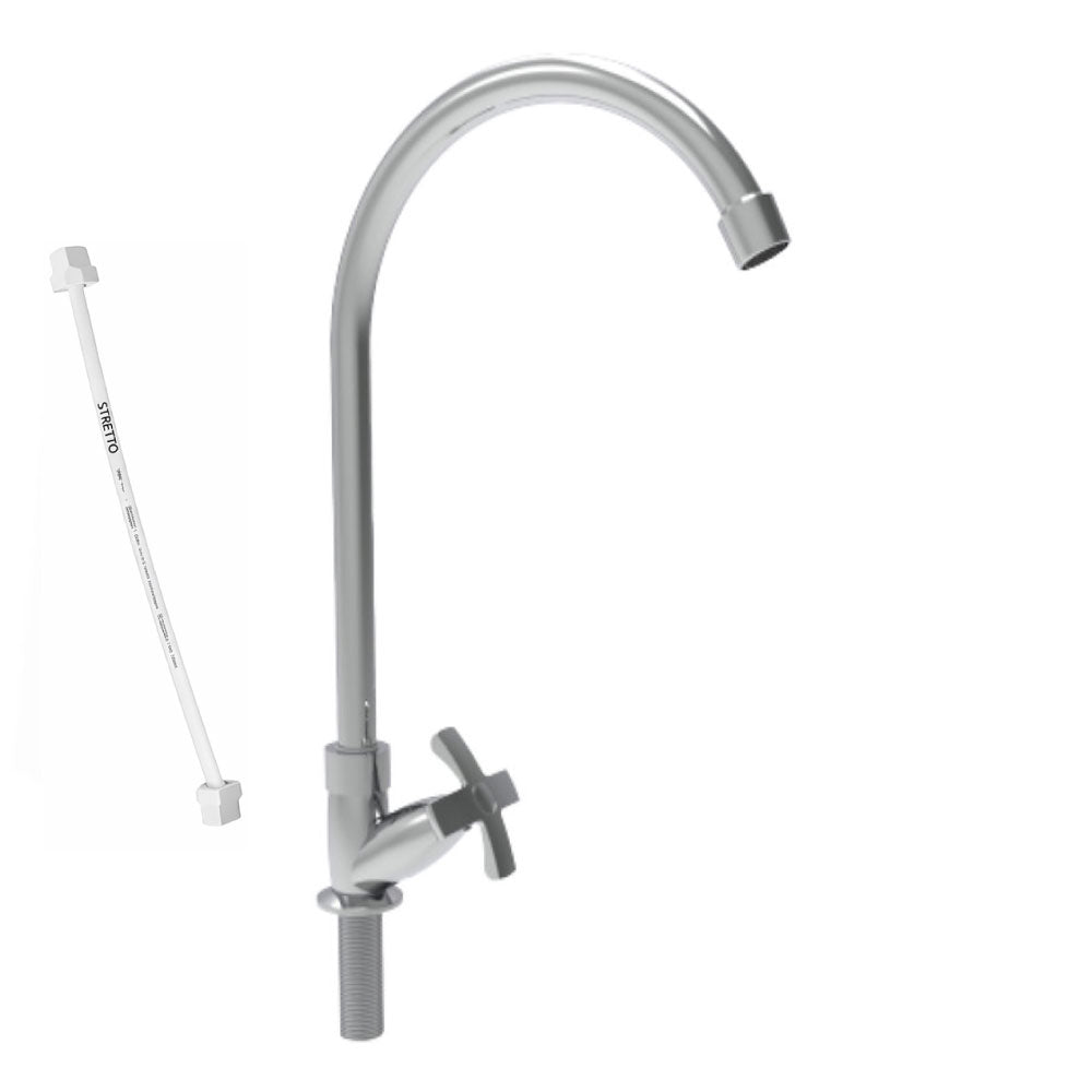 La grifería para lavaplatos sencilla Lotta Cruz Cromo Stretto es una solución ideal para quienes buscan eficiencia, sostenibilidad y estilo en su espacio. Diseñada para el ahorro de agua, cuenta con tecnología de doble ahorro ajustable que permite modificar el consumo según la presión de agua de la vivienda, cumpliendo con la normativa colombiana. Su elegante cuello con vástago de 1/4 de giro no solo brinda un toque sofisticado, sino que también asegura mayor durabilidad.