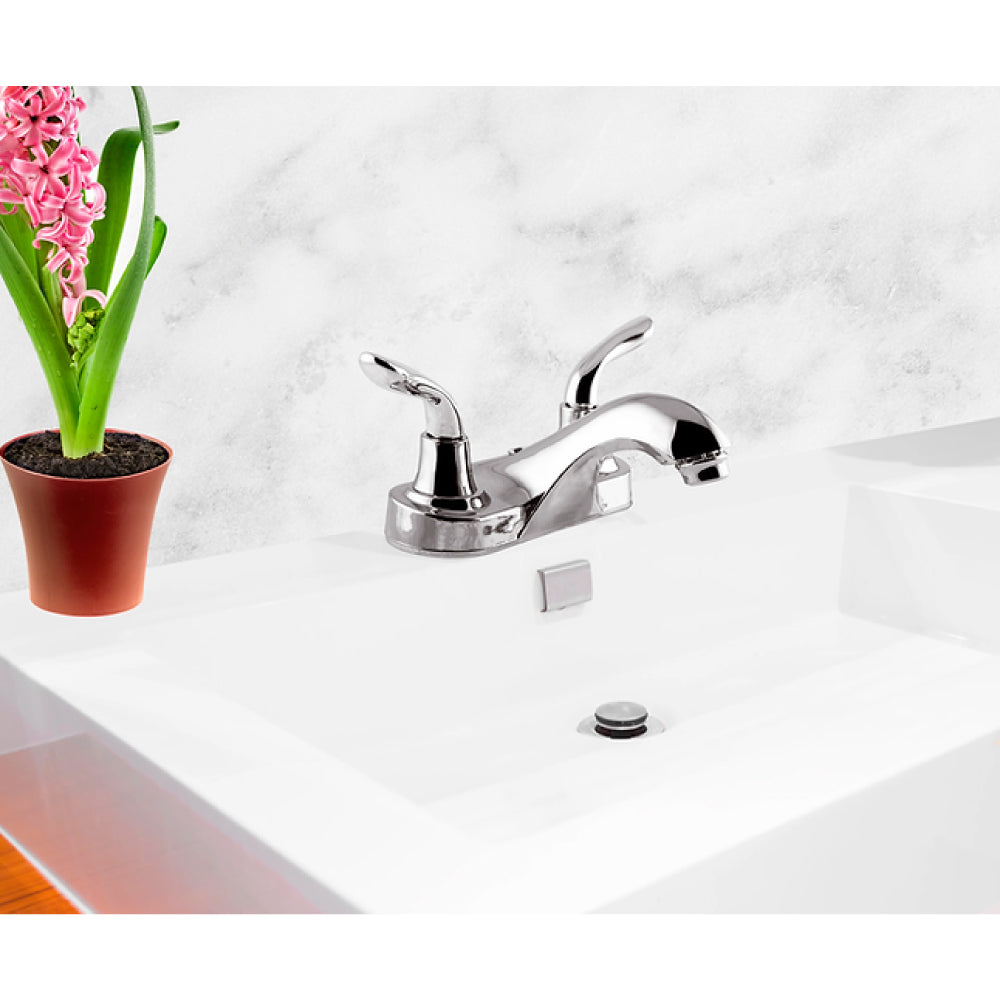 Grifería lavamanos convencional Línea Monza Antic 4 Pulgadas, tradicional diseño cuerpo y manijas ABS cromo. Conexión a toma de agua por unión roscada de 1/2” HE. con manija rango de apertura 1/4 de giro para corte rápido.