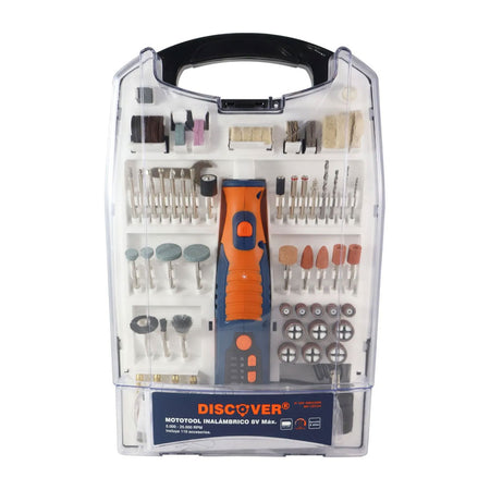 El mototool Discover inalámbrico 7.2V es la herramienta ideal para trabajos de precisión, detalle y acabado profesional. Diseñado para artesanos, modelistas, grabadores y aficionados al bricolaje, este equipo ofrece un alto rendimiento en una presentación compacta, liviana y versátil.