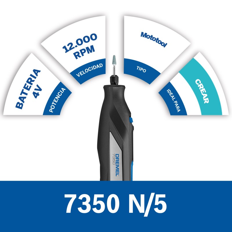 ● Control preciso de 12.000 RPM de una sola velocidad para aplicaciones de lijado, amolado, afilado, pulido y grabado